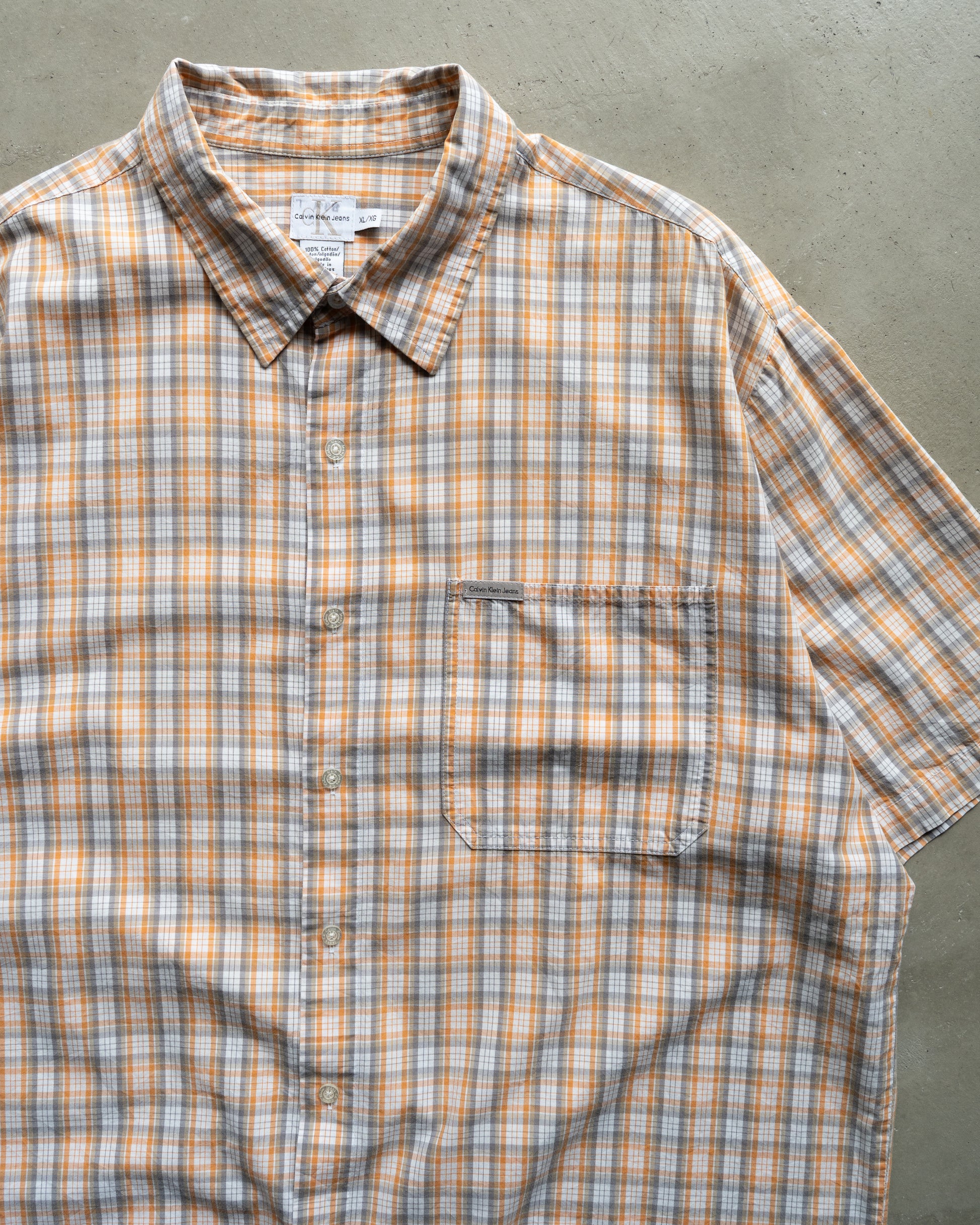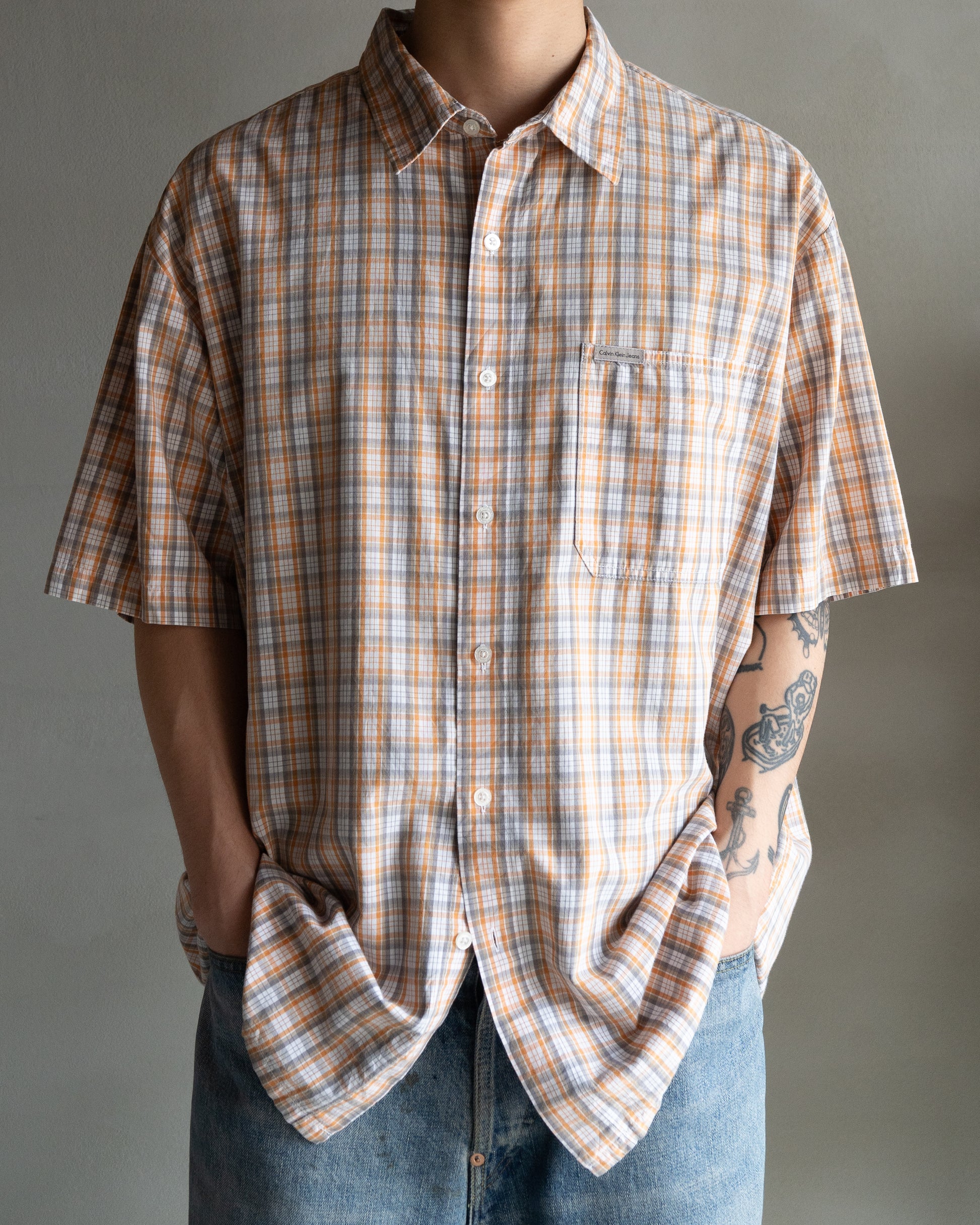 Calvin Klein Jeans cotton orange/gray check shirts .. box silhouette..