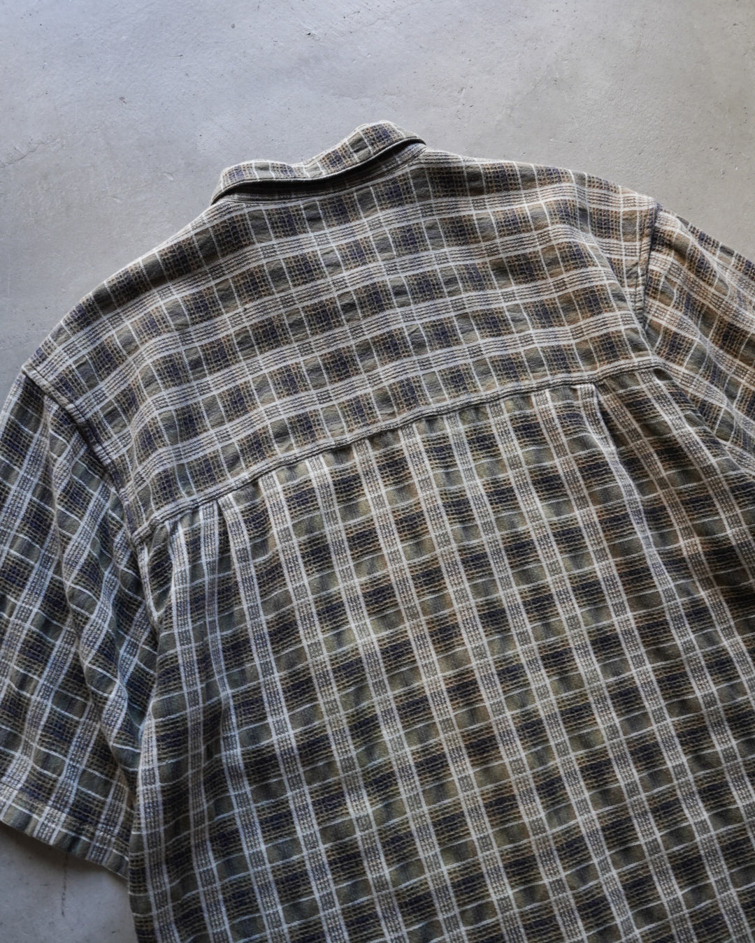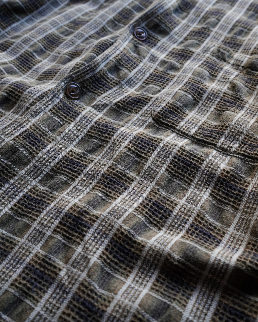 凸凹のあるチェック柄が印象的な半袖シャツ