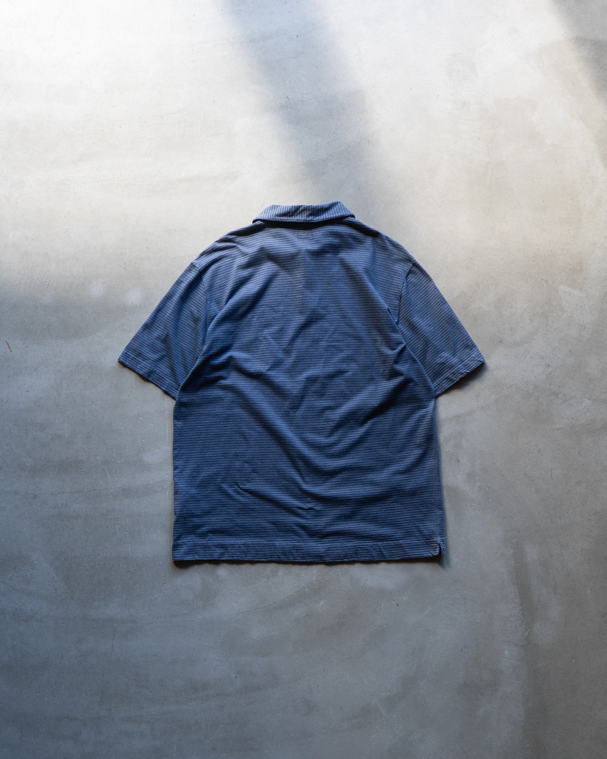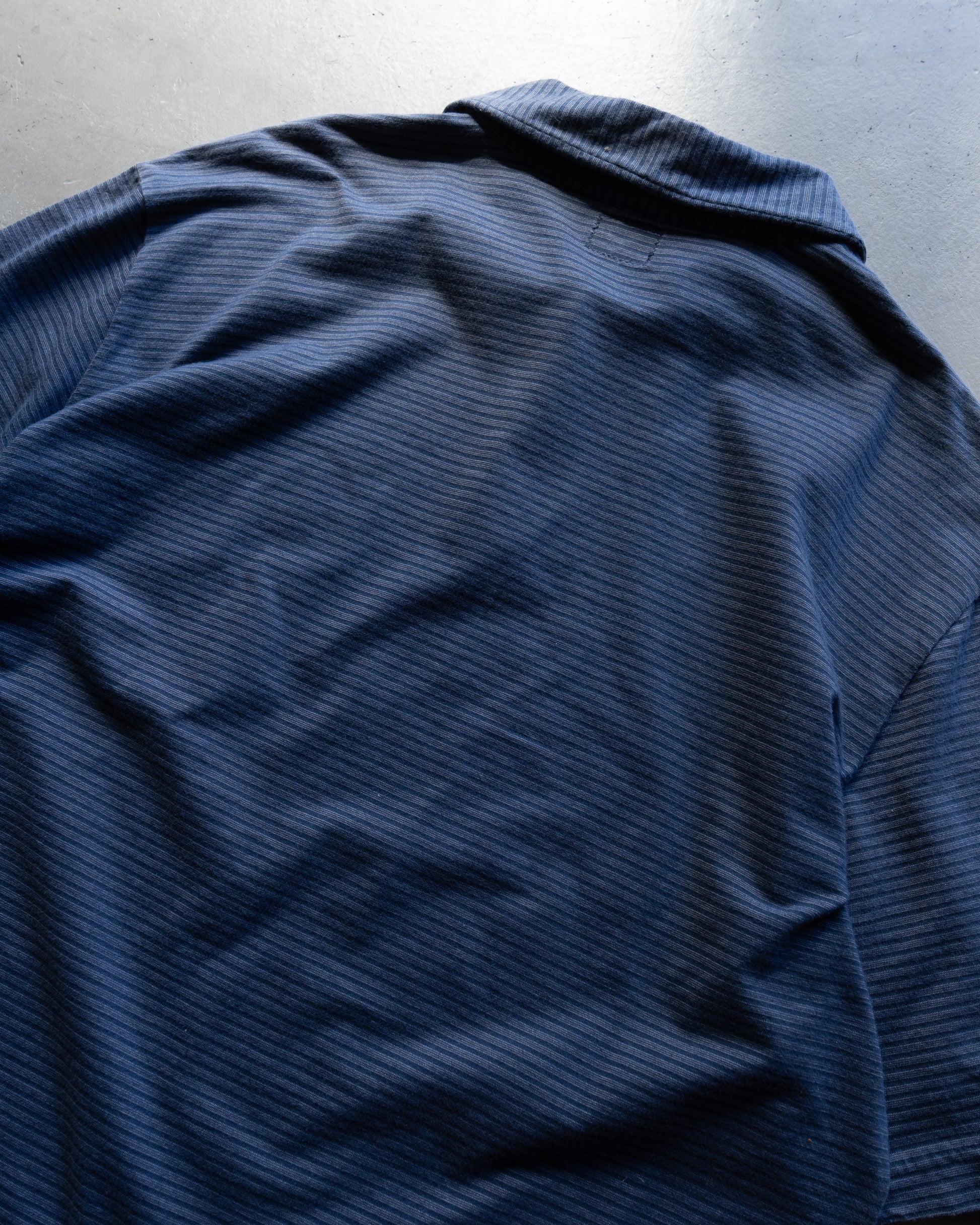 深みのあるネイビーに、繊細なボーダー柄のポロシャツ