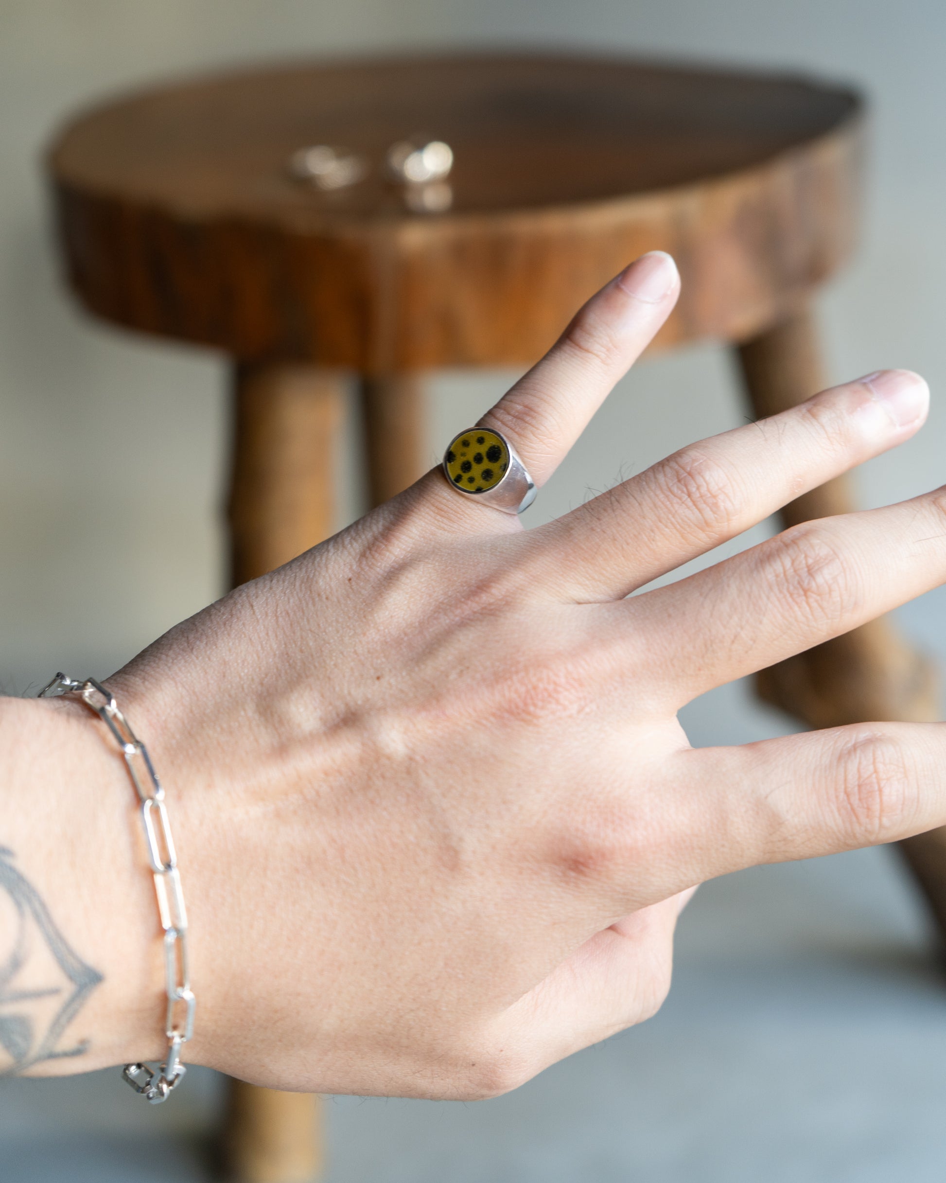 イエロー×ブラックのモダンなドットをあしらった