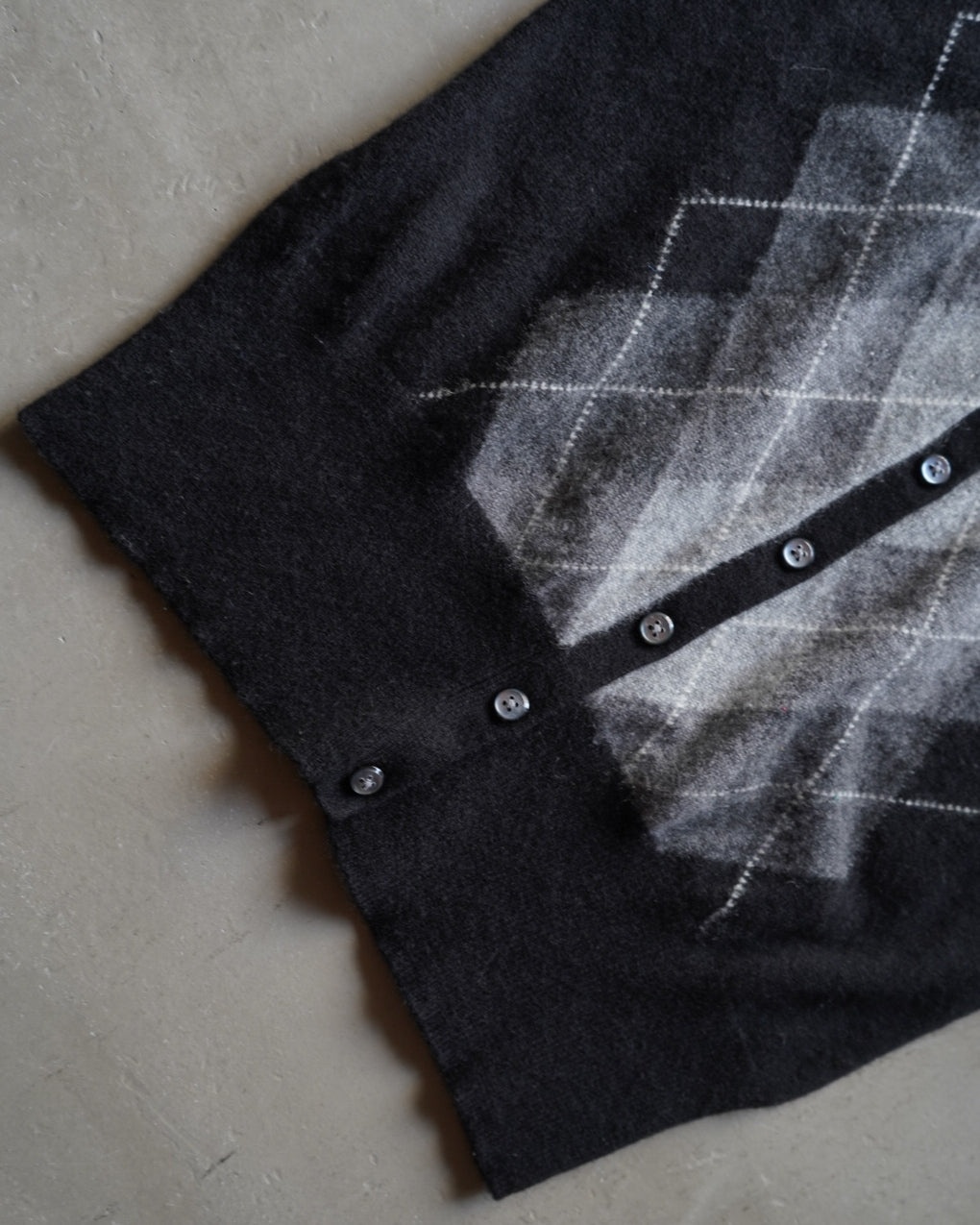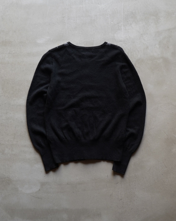 カシミヤ素材を使用したブラックベースのアーガイル柄