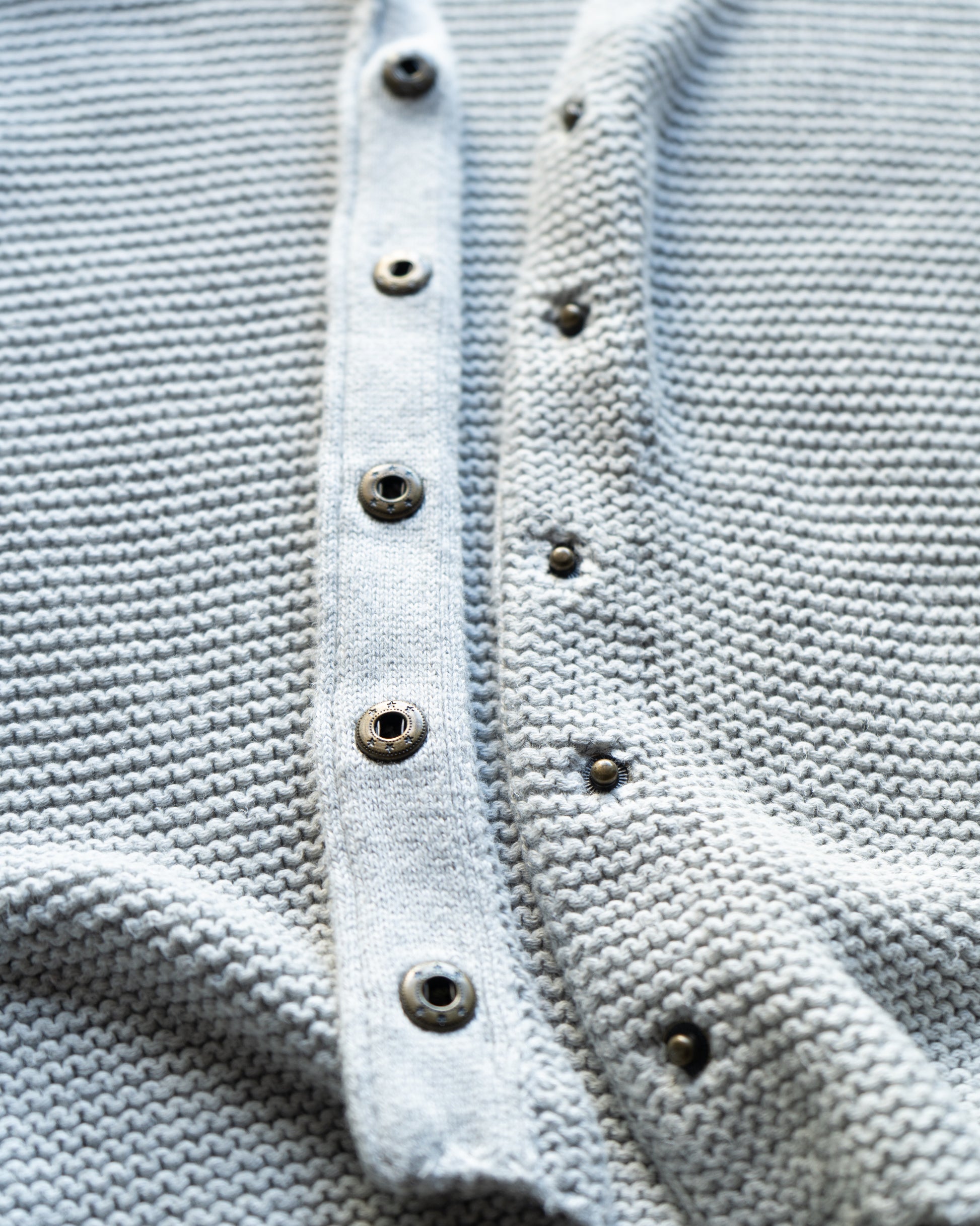 ボタンは比翼仕立てのスナップになっていて、