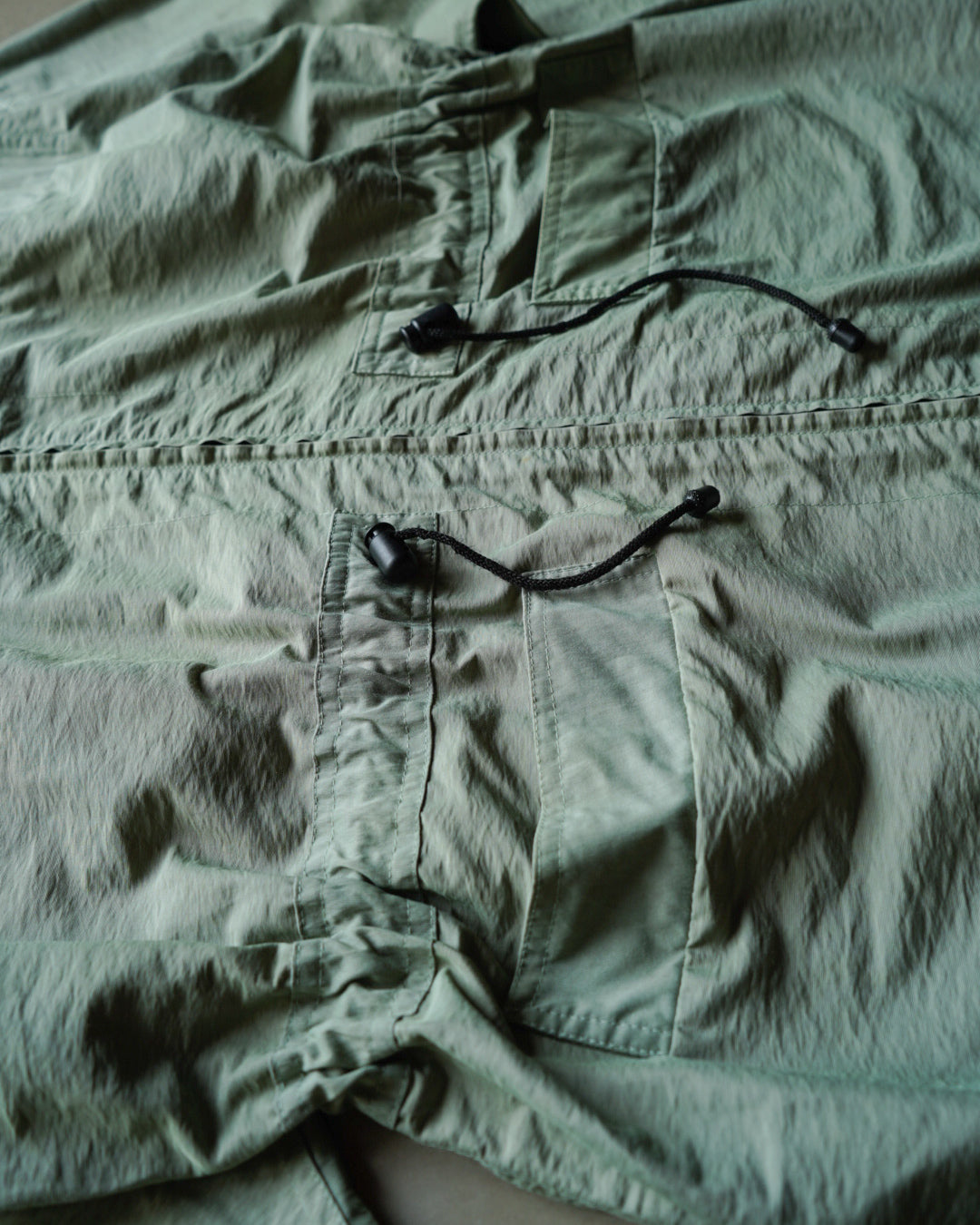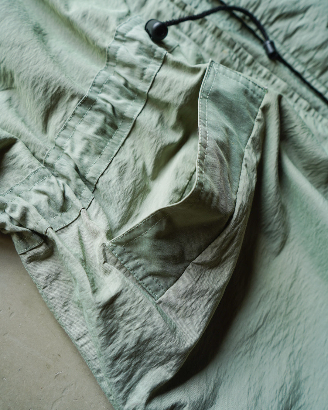 軽量でさらりとした質感のナイロン系ファブリックを使用し、